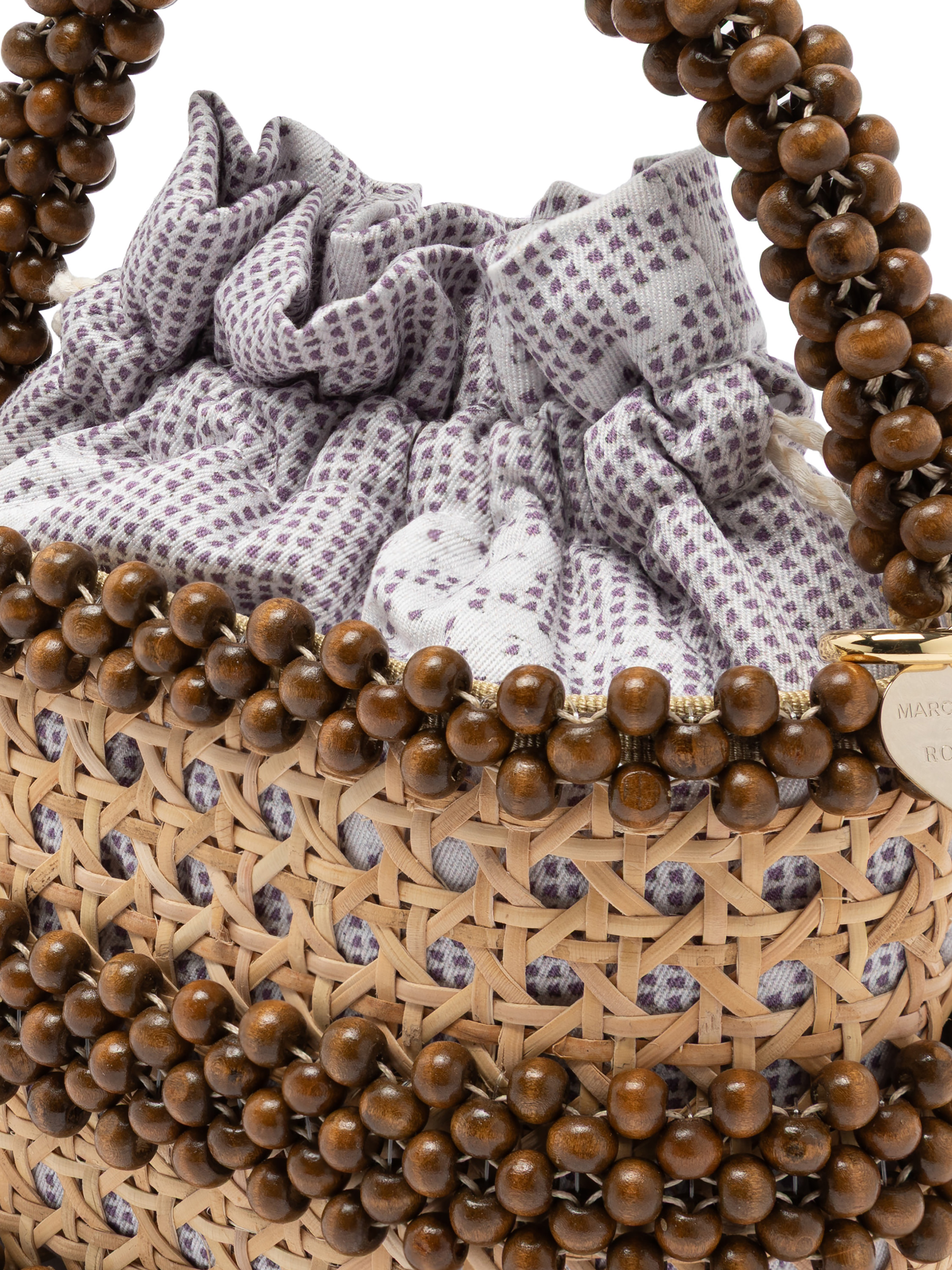 Created through the collaboration between Marco Rambaldi and Rosantica, the Holli Sakura is crafted from Vienna straw and wooden beads. Natural materials are transformed into a refined and lightweight accessory where artisanal tradition meets contemporary design in a distinctive aesthetic.