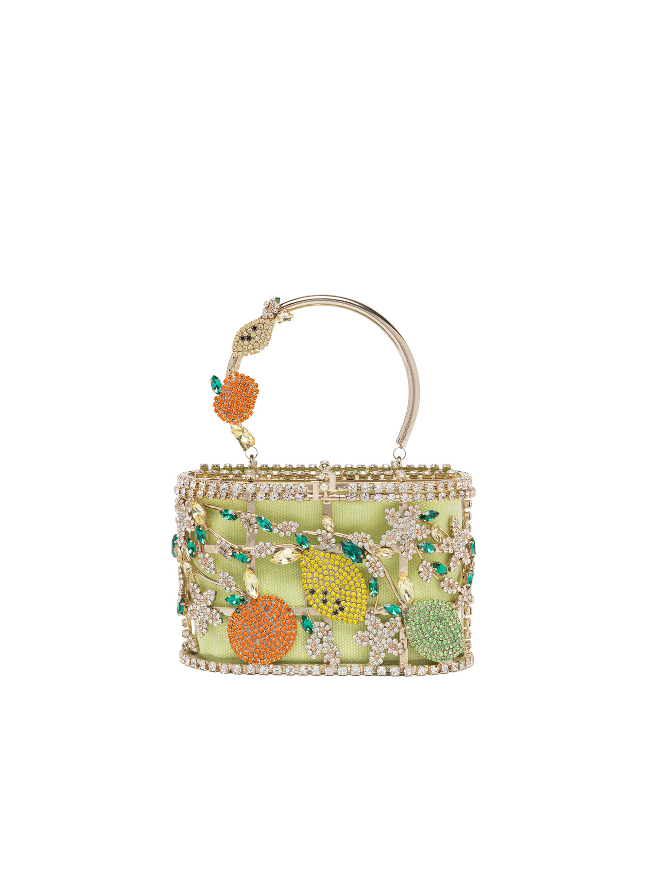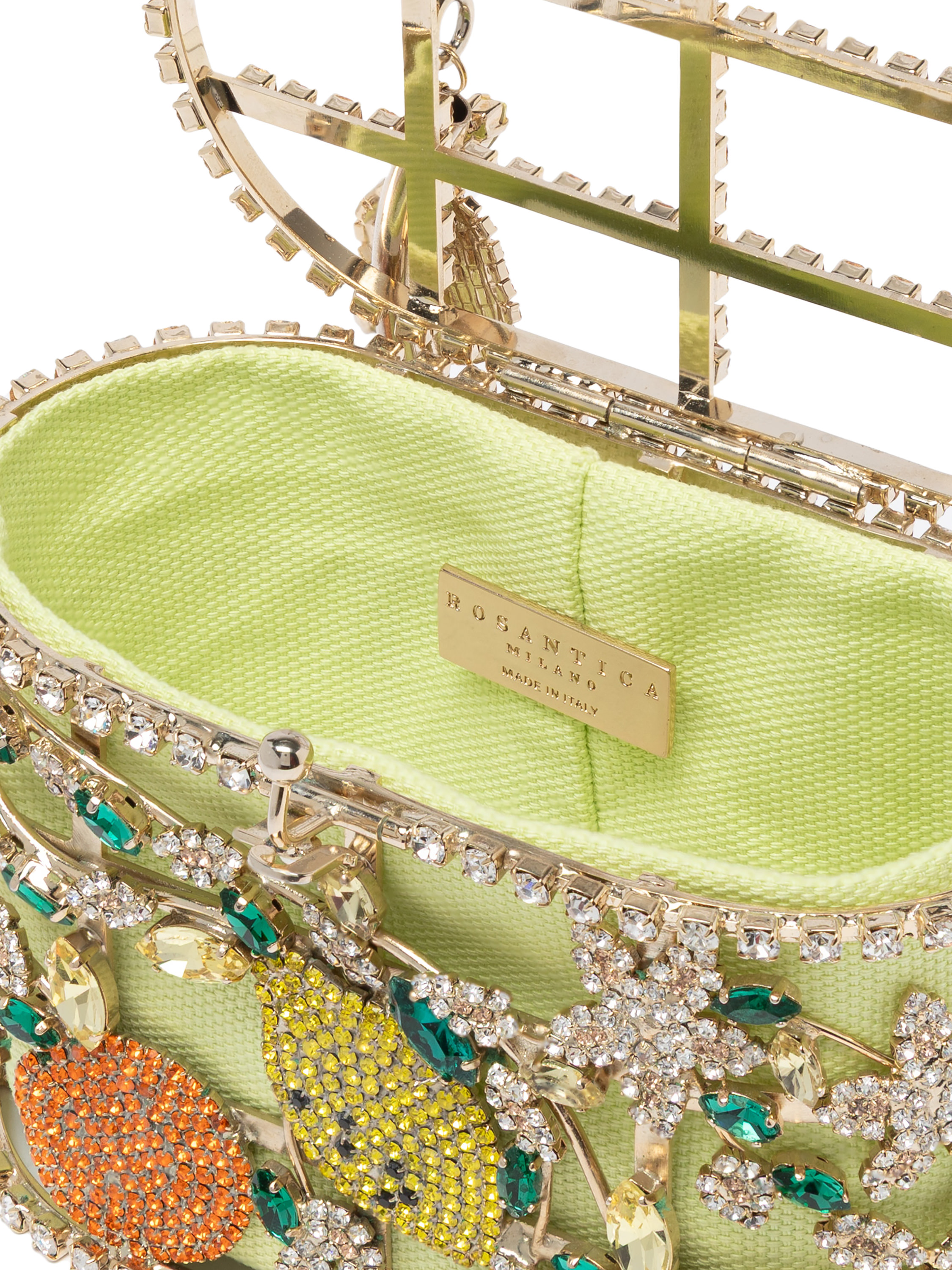 The Mini Holli Sorrento in multicolor crystals and gold toned brass is a small masterpiece of Italian design, vibrant and refined. Every detail is handmade with meticulous craftsmanship: the multicolor crystals reflect light like the hues of the Mediterranean coast, creating a precious and radiant accessory. Perfect for adding color, sparkle, and elegance to any outfit, this mini bag combines contemporary luxury with artisanal tradition.