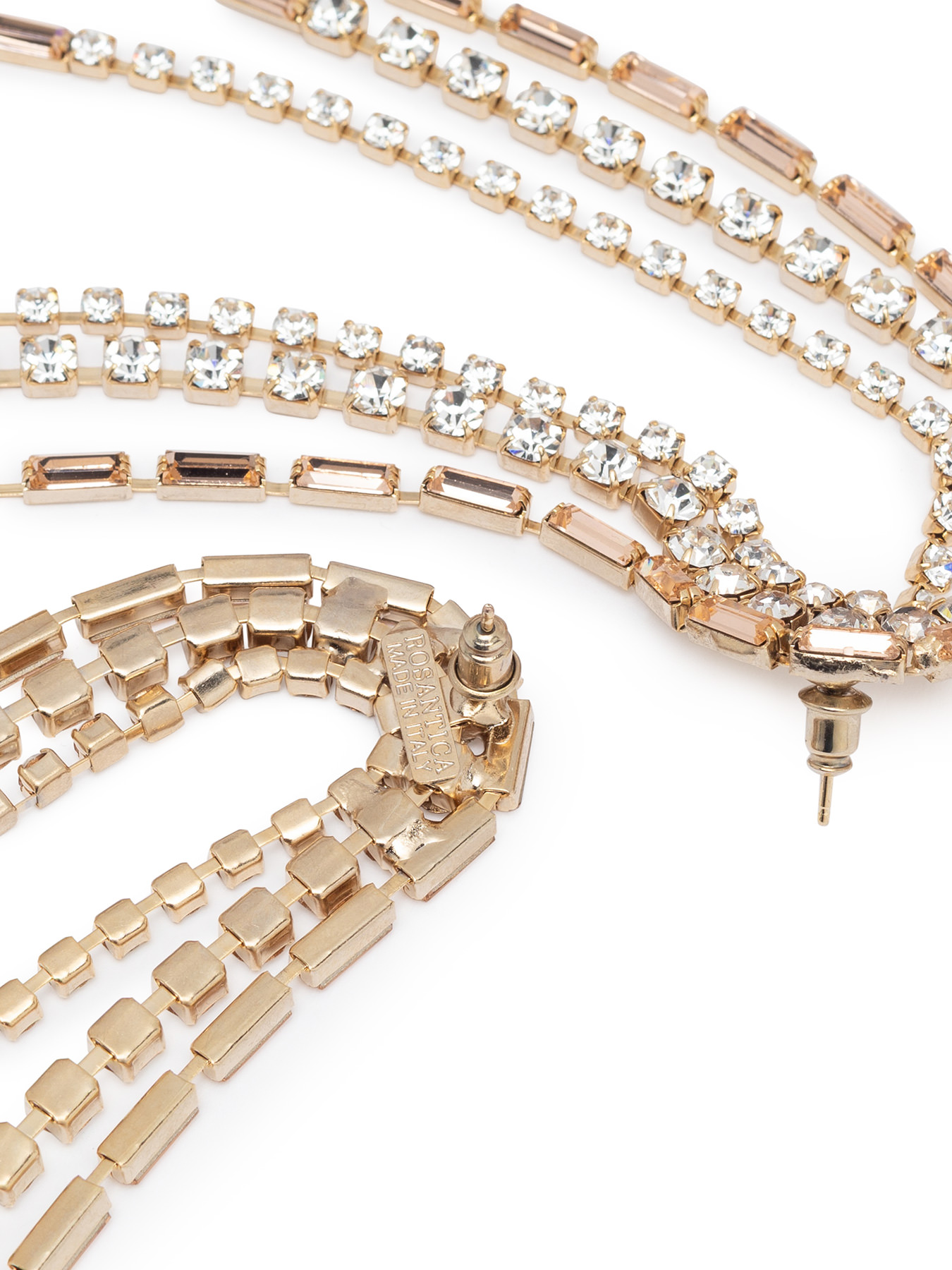 The "Amarena" long earrings feature multicolored crystals set in gold-toned brass. These unique pieces provide a radiant sparkle and are perfect for both everyday wear and special occasions, showcasing Italian artisanal precision.