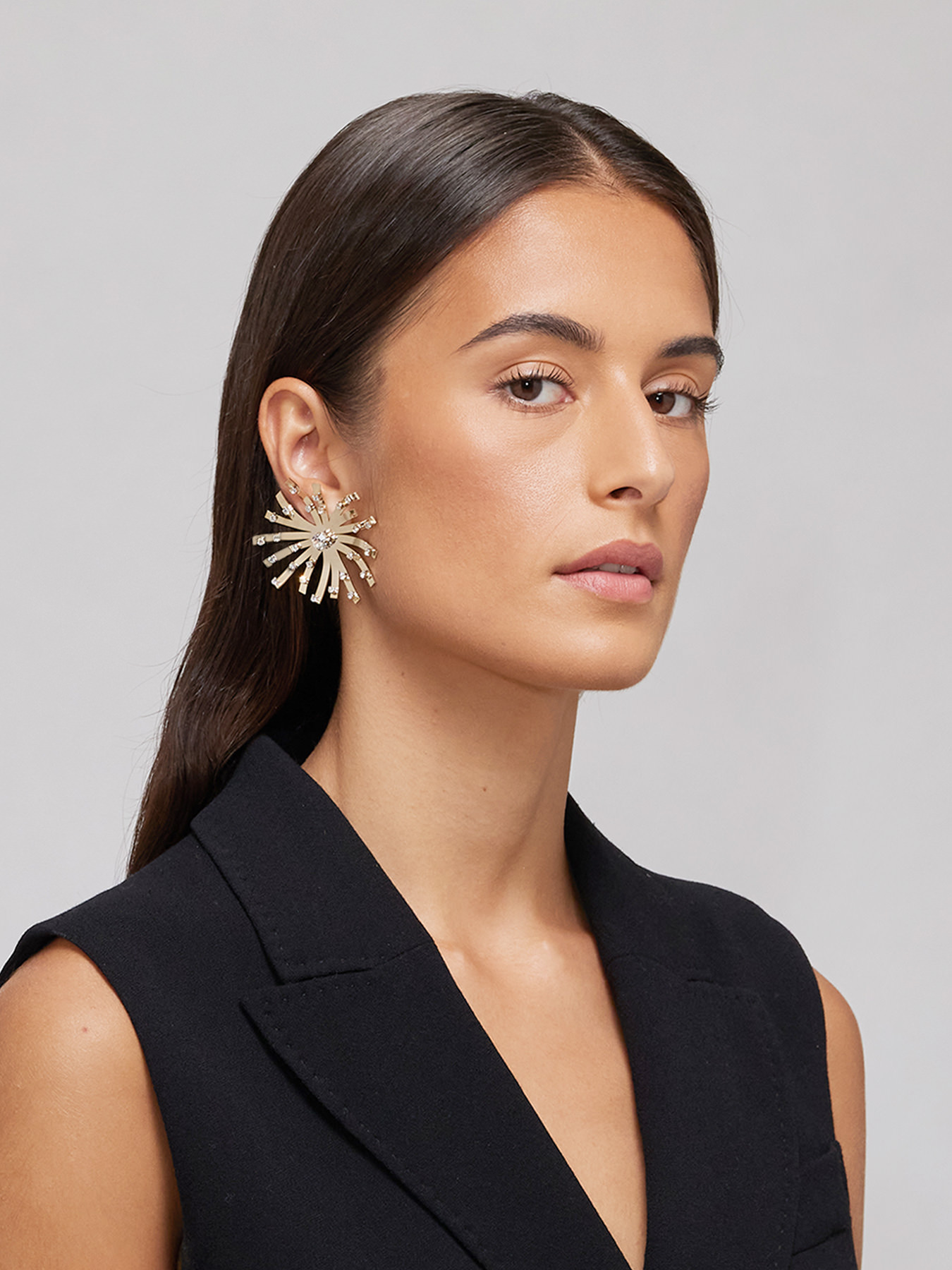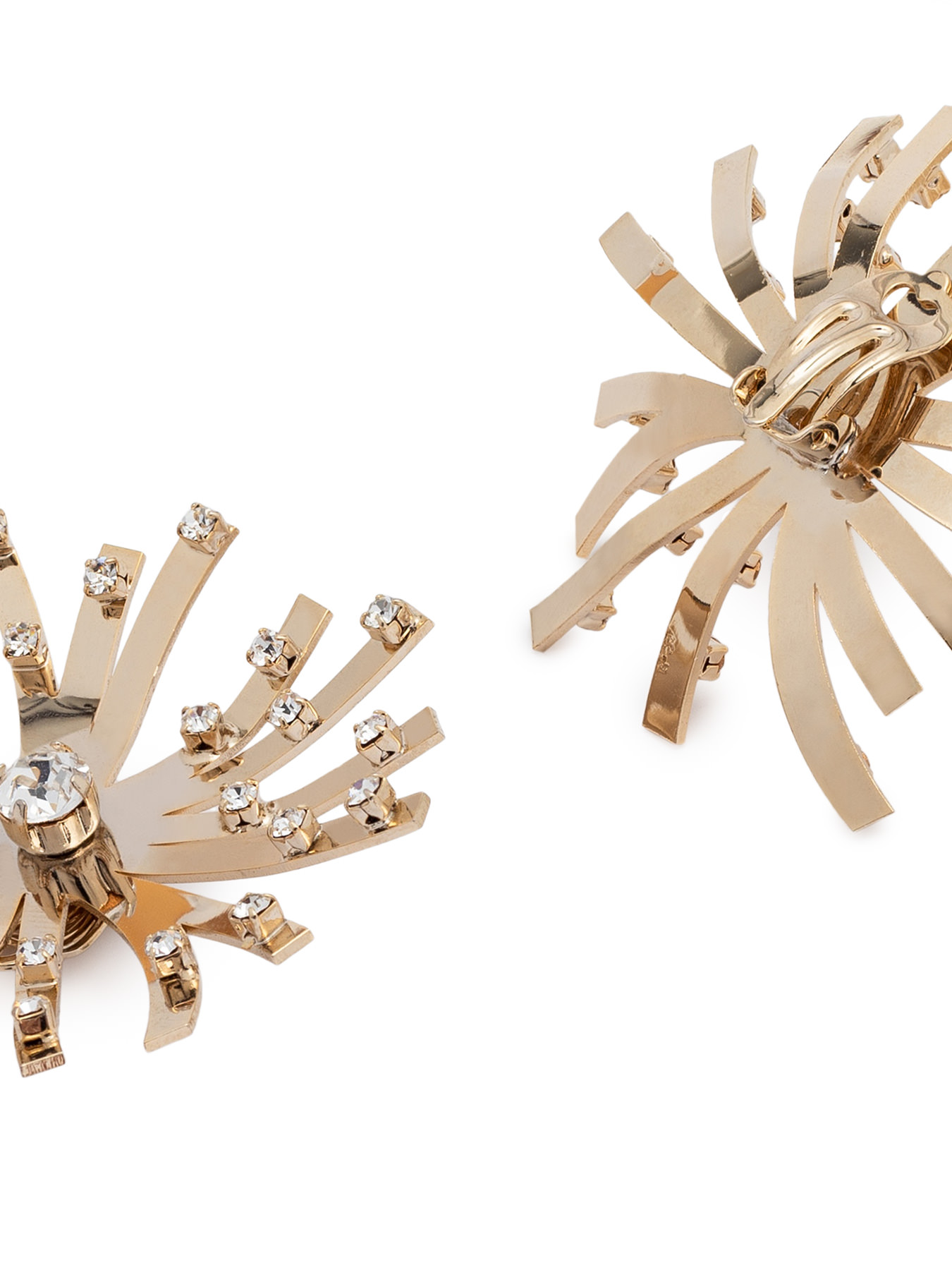 The "Girasole" earrings combine the radiant elegance of gold-toned brass with sparkling crystals. Perfect for elevating everyday looks or completing evening outfits with fun and sparkle.
