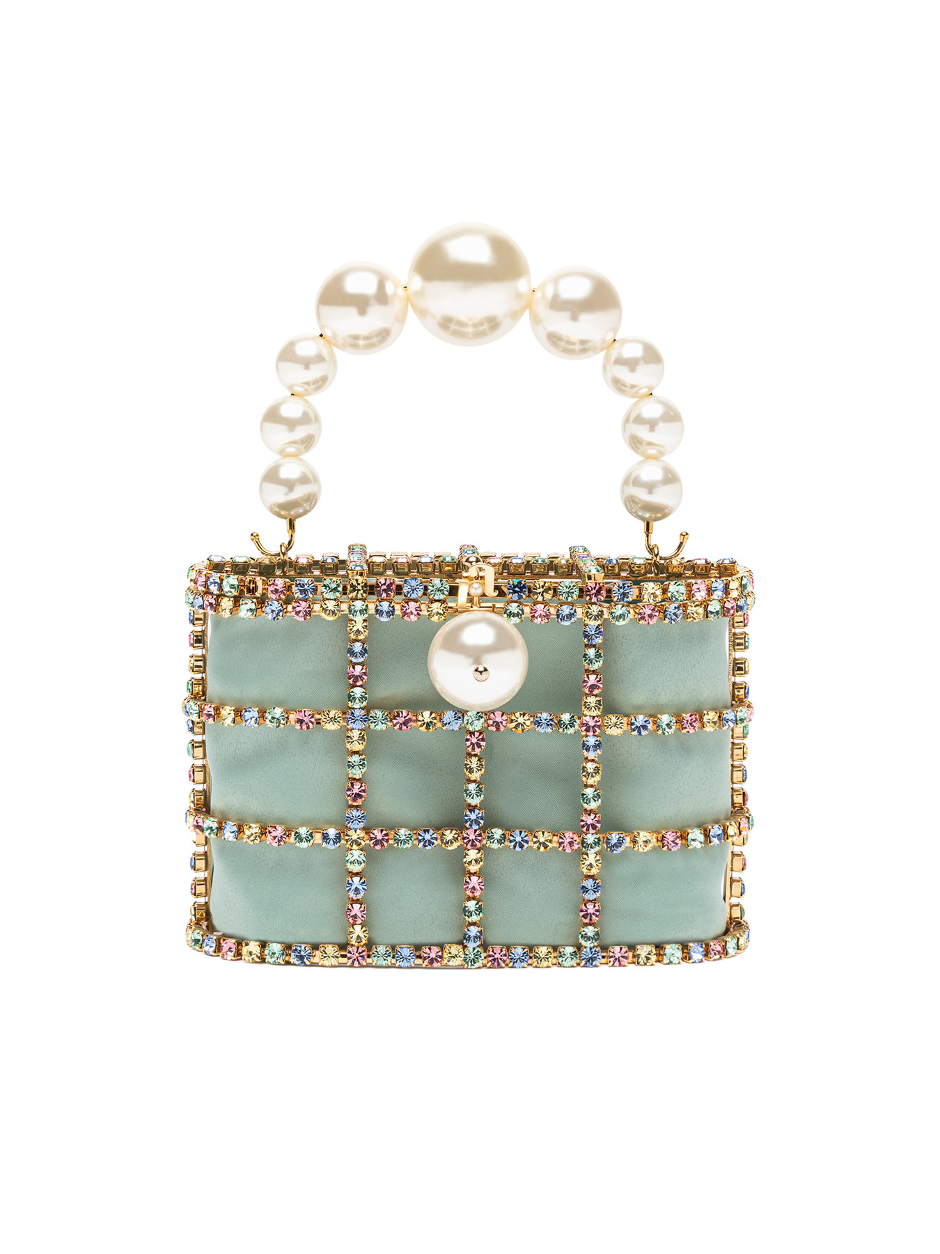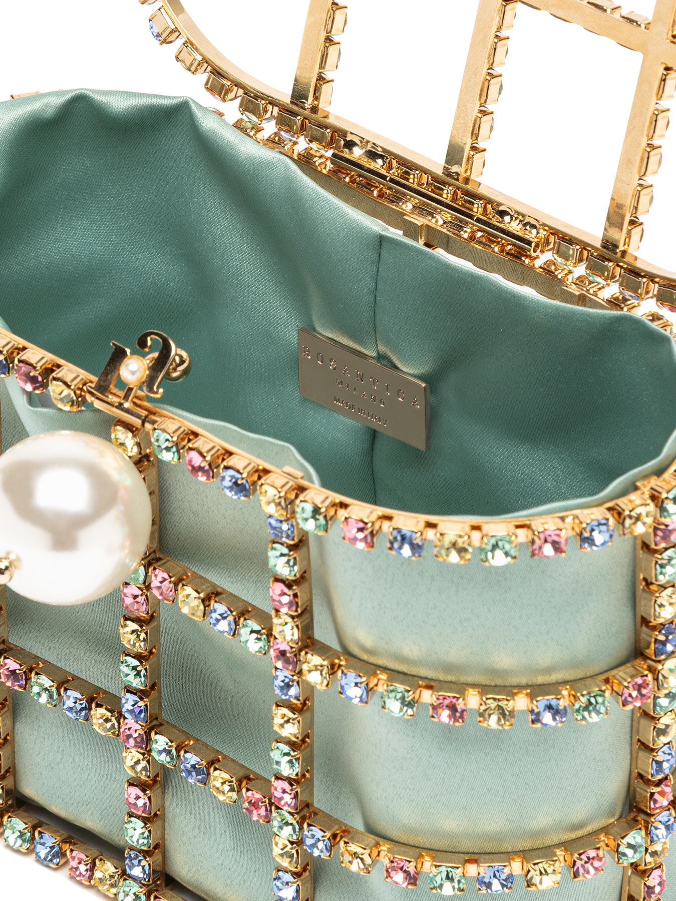 L'iconica "Holli" incarna una sofisticazione senza tempo con ottone, perle e cristalli, dotata di pochette e manico removibili per styling versatile, offrendo un pezzo di lusso per ogni occasione.