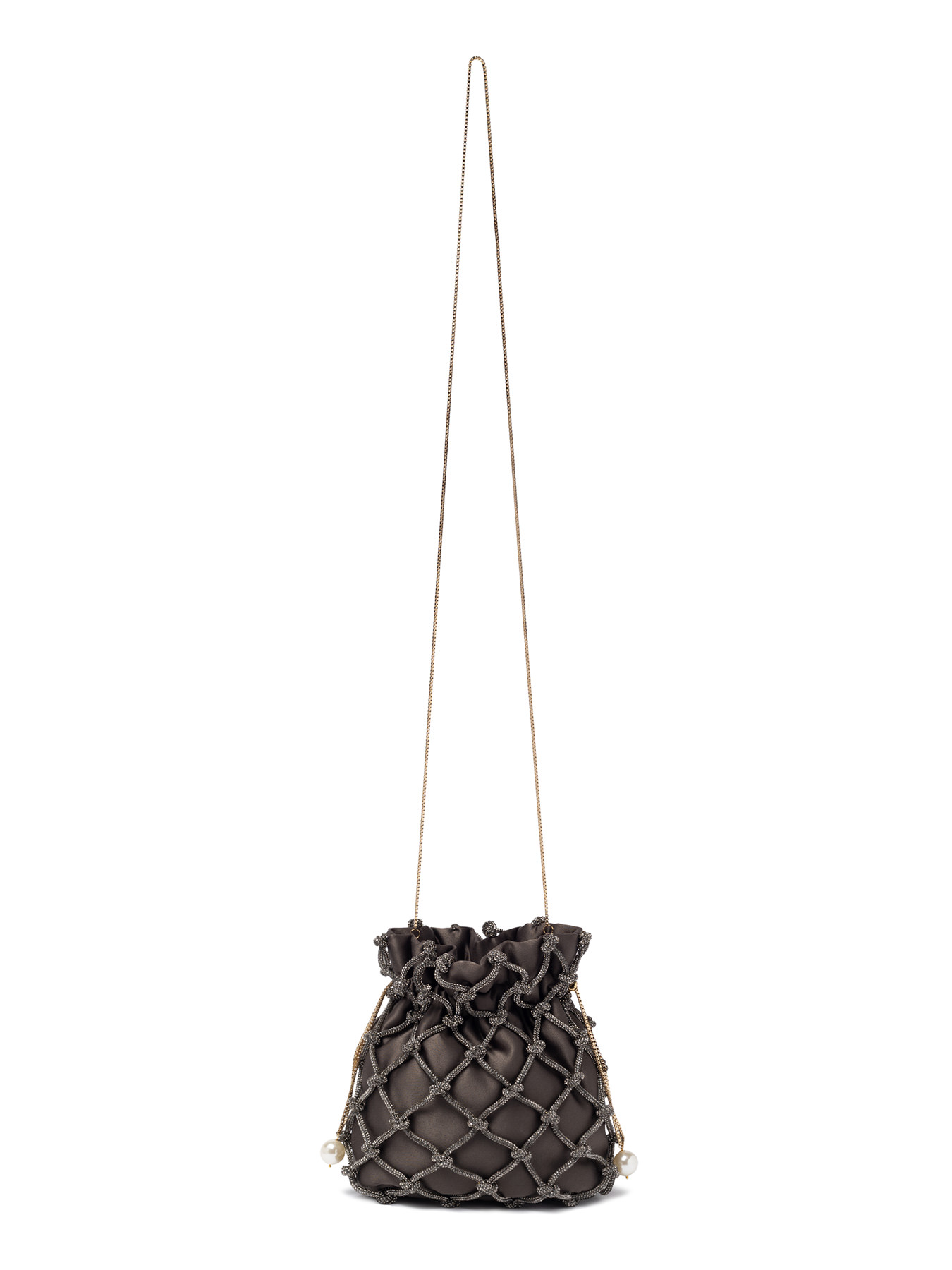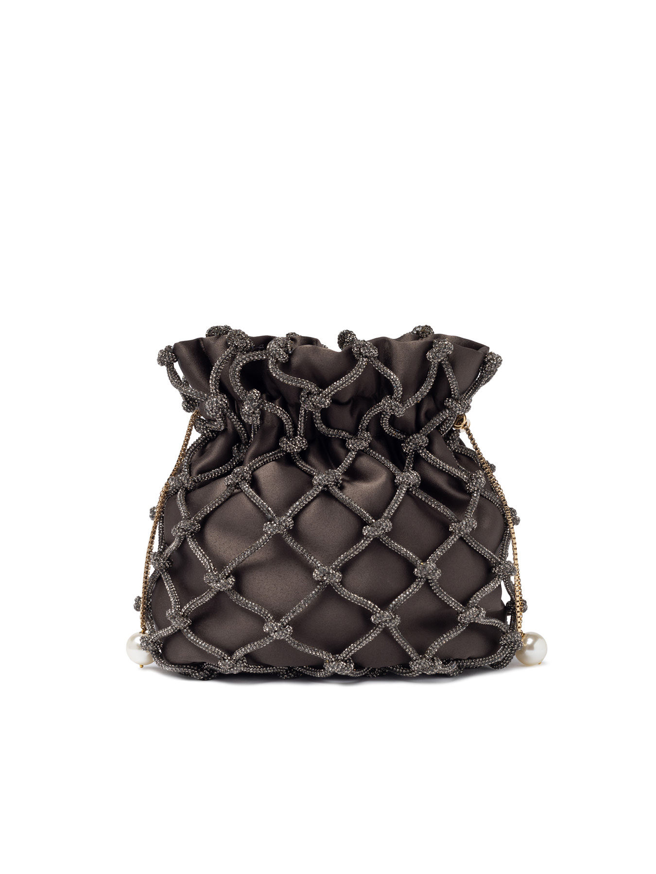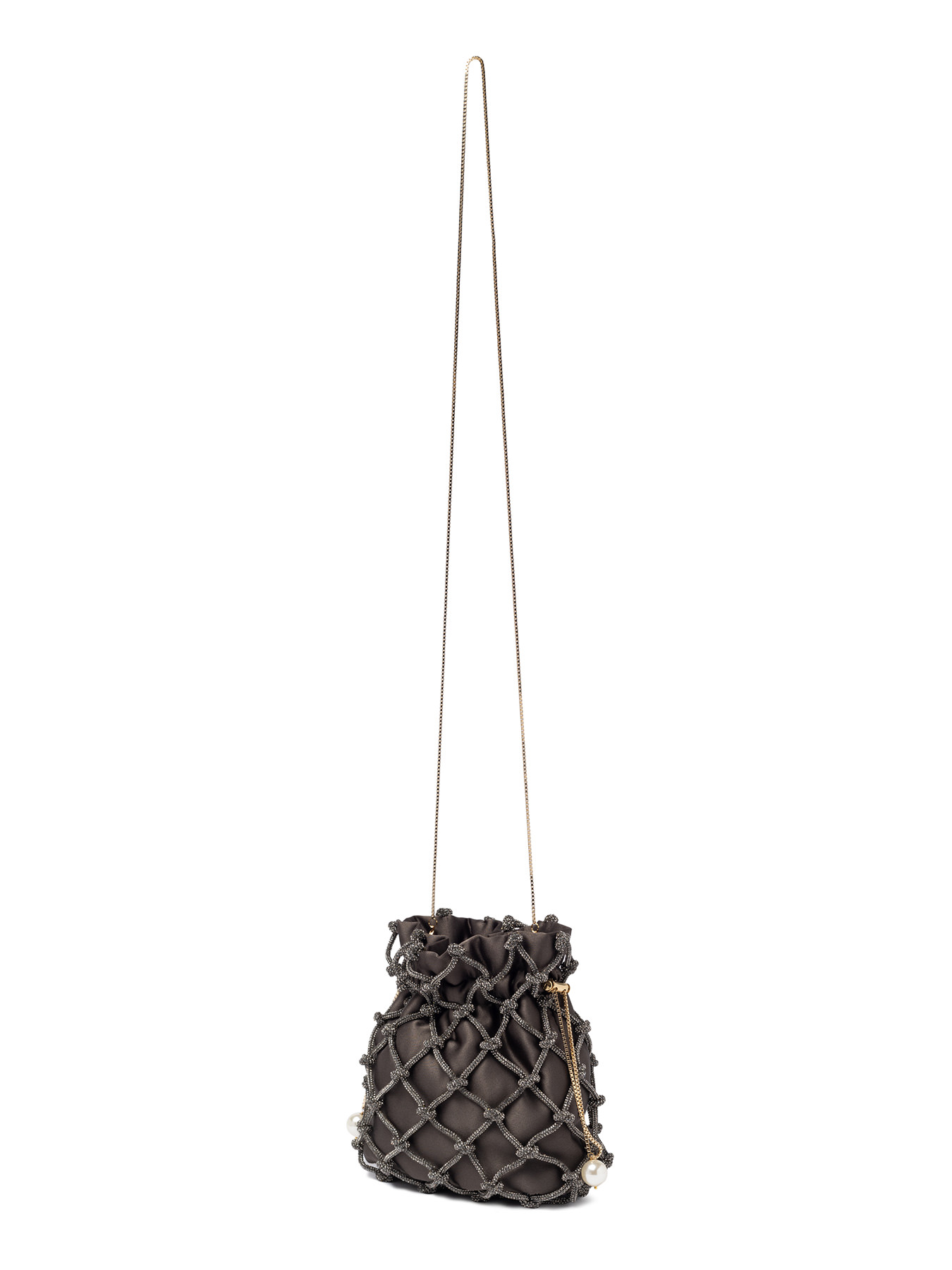 La handbag "Selene Capri" è un radioso simbolo dell’arte italiana, con microcristalli intrecciati a mano e una sofisticata pochette in tessuto. Catena in ottone dorato per portarla a tracolla, pensata per chi ama l’originalità con eleganza.
